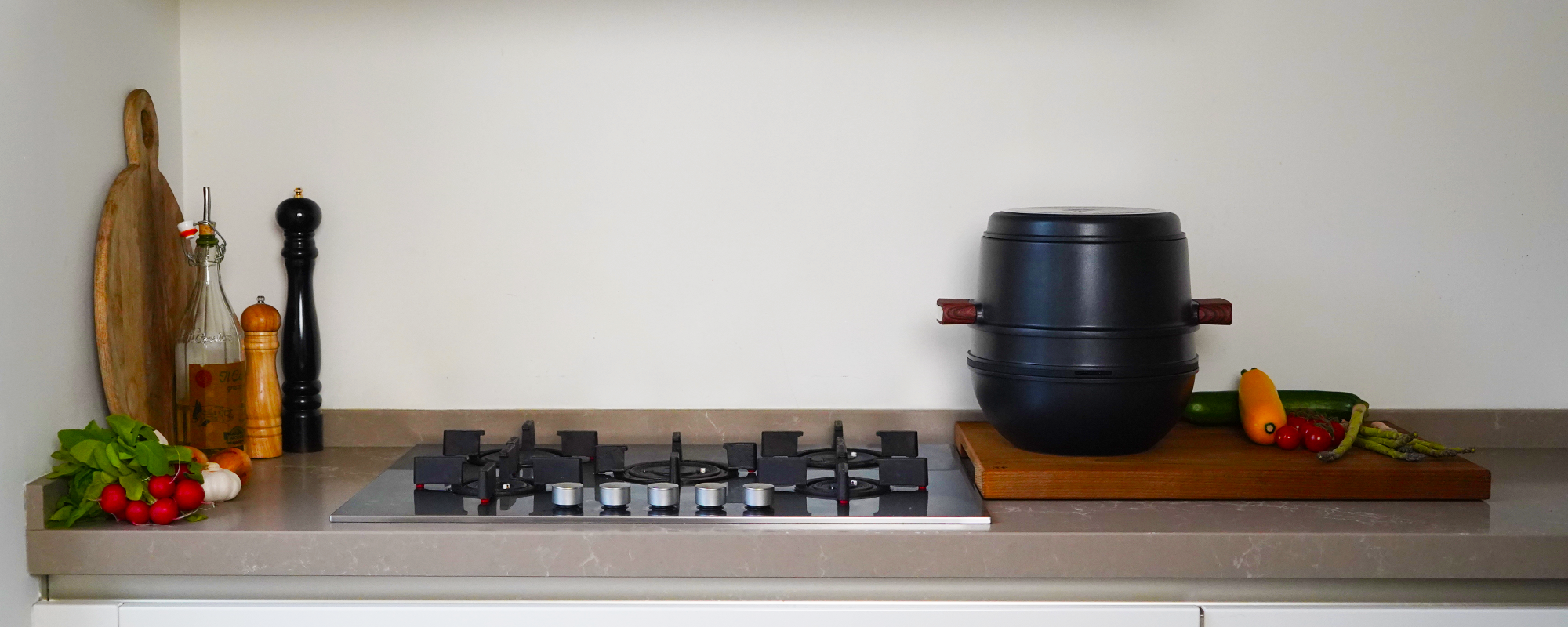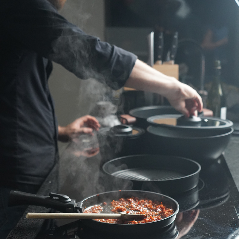 Elk product is het resultaat van maandenlange productontwikkeling. Ontwerpers, professionele koks en beginnende thuiskoks zijn allemaal betrokken bij de beoordeling van onze prototypes. Zodat we kunnen schrappen wat niet nodig is en de dingen behouden die het verschil maken. Het resultaat is ruimtebesparend kookgerei van hoge kwaliteit, met alle benodigde functionaliteiten.