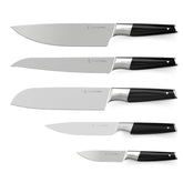 Verbeter je kookervaring met de Essential 5-delige messenset, de onmisbare messen voor iedere keuken. Ieder mes, gesmeed uit 67 lagen Duits staal, biedt uitzonderlijke hardheid en langdurige scherpte met een 58 Rockwell Rating.